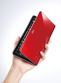 富士通週一(1/18)展示今春FMV電腦品牌旗下8系列17款PC。其中LOOX U從富士通個人電腦商務部門部長齋藤邦彰的口袋中取出時,引起現場鎂光燈不斷。