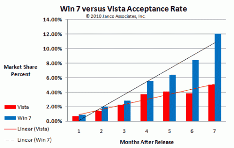 除了瀏覽器外,Janco Associates也發布了作業系統使用率的報告,微軟最新的Windows 7在推出半年多之後就已取得OS市場的12.05%佔有率。Janco Associates執行長Victor Janulaitis 表示,微軟OS如此受歡迎,前一次是XP的推出。(編譯/陳曉莉)