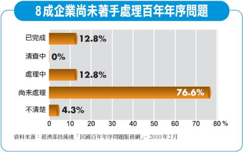 根據經濟部在去年12月針對臺灣中小企業作的調查,有將近2成(19.8%)約24萬家中小企業,自評有民國百年年序問題風險。所謂的百年年序問題就是,IT系統面臨民國100年年序欄位長度不足,導致系統與資料誤判。為了解決這個百年年序問題,經濟部技術處除了在去年10月成立「民國百年年序問題服務網」(y100.dgbas.gov.tw),也從今年2月推出企業諮詢服務專線(02-2391-6114),目前由資策會委由探網科技提供專線技術諮詢服務。