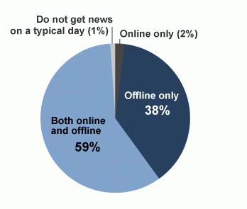 Pew研究顯示,網路現在已經成為第三大的新聞取得平台(61%),僅次於地方新聞(78%)及國家新聞(73%)電視節目,領先地方報紙及國際性的報紙(50%),和無線電廣播(54%)。而網路新聞的崛起也改變了美國人看新聞的習性,隨著網路新聞成為主要的新聞消費來源,新聞也變得更具可攜性(portable)、個人化,以及參與性。