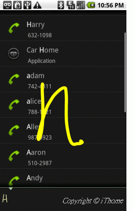 Google實驗室周三(3/3)宣布在Android平台上新增手勢搜尋(Gesture Search)應用程式,使用者只要在觸控式螢幕上以手指輸入英文字母,就能搜尋儲存於手機上的各式資料,包括聯絡人名單、應用程式、音樂及書籤。
