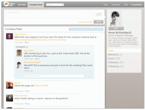 Srinath指出,OfficeTalk是迄今微軟內部最受歡迎的概念測試,因為它證明了微型部落格的用途不僅是純粹的社交,而且也能快速部署IT管理功能同時創造獨特的協作效率與經驗。
