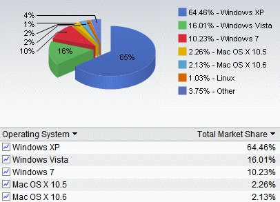 同樣在市佔率上有亮眼表現的是微軟的Windows 7作業系統,從去年10月發表迄今,不到半年的時間在今年3月的市佔率已攀升到10.23%,僅次於Windows XP的64.46%,以及Vista的16.01%。