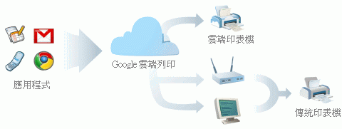 根據Google Cloud Print計畫的說明,各種桌面及行動應用程式,或雲端應用,皆能透過該服務進行列印。這個屬於Google代管的網路服務,讓使用者可以透過Google帳號提供並儲存印表機資訊,同時讓印表機成為可與同事或友人分享的裝置。