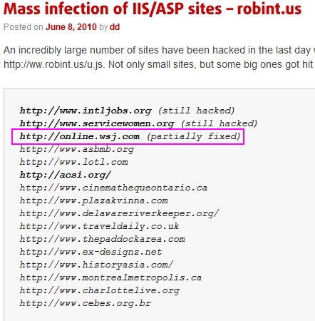 ScanSafe強調,相較於幾年前SQL Injection剛開始時動輒超過百萬網頁受到感染,七千網頁實在沒什麼。據ScanSafe研究,華爾街日報並不是網站的主站直接受到感染,而是第三方合作網站adicio.com的問題,該網站在WSJ上專門提供房地產的顯示型廣告。