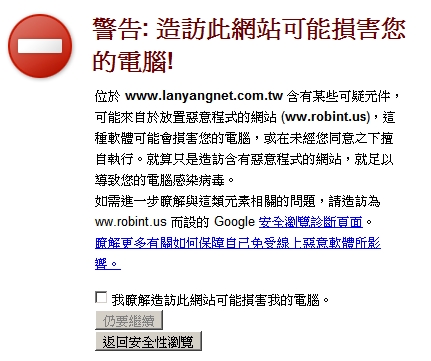 ↓ 以Chrome瀏覽器連進上面的蘇澳冷泉公園網頁出現警訊