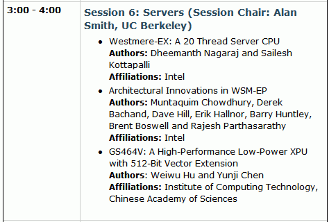 Intel的「Westmere-EX: A 20 Thread Server CPU」議程