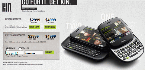 Kin One及Kin Two在今年5月中旬登上Verizon手機銷售網站時,其綁約兩年再加上100美元郵寄退款的手機售價分別為49.99美元及99.99美元,但不到兩個月的時間,Verizon在本周大幅度調降這兩款手機的價格,現在Kin One只要29.99美元,Kin Two只要49.99美元,價格只有原先的一半。
