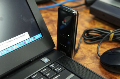 ↓由於目前生產LTE的網卡業者還不多,使用的是Samsung網卡進行測試,圖為2.6GHz的FDD-LTE網卡,大小與一般3G網卡相近。