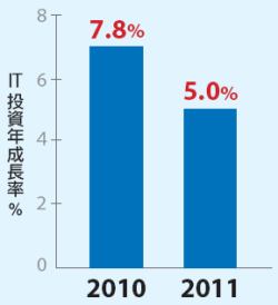 資策會MIC預估,臺灣員工超過200人的大型企業2011年IT投資規模,將呈現小幅成長5%,預估約有827.3億元,而接下來的三年會逐步下滑。雖然不及2010年投資大幅增加了7.8%,2011年整體企業受到ECFA議題帶來的景氣增長影響,IT的投資仍會增加,另外製造業則會因綠色供應鍊、IFRS以及擴廠建廠的需求驅動而增加IT投資。文⊙辜雅蕾
