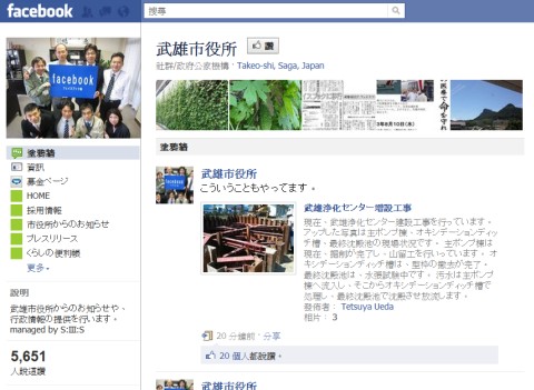 日本佐賀縣武雄市週一(8/1)起將原有的市府官網內容轉移至Facebook社群網站,成為日本第一個採用Facebook作為官方網站的政府機關。