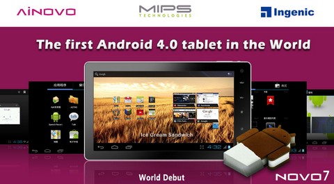 處理器架構暨核心開發業者MIPS與中國IC業者君正周一(12/5)共同發表全球首款採用Android 4.0所打造的平板電腦─NOVO7,售價只要99美元,已於中國市場開賣,之後將陸續於美國及其他市場推出。