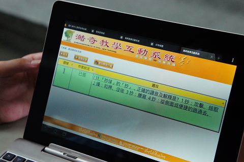 ↓ 平板電腦搭配的互動教學系統,老師利用IRS即時問答系統出題或詢問學生意見,是電子書教學上的一大特色,不過現場實際教學中學生仍以舉手方式,e化互動教學上仍不夠徹底。