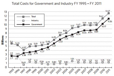 美國國家檔案局公布資訊安全督導辦公室(ISOO,Information Security Oversight Office)的2011成本報告顯示,2011年美國政府總共花費113.6億美元在保護機密檔案安全,比2010年增加12%,為十年前(2001年)47億美元的兩倍多。