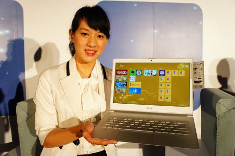 ↓ 另一款則是宏碁尚未在國內發表的Aspire S7,採用英特爾Ultrabook設計,外型相當輕薄,配合Windows 8搭載觸控螢幕,螢幕最大可180度平放和他人分享電腦畫面。