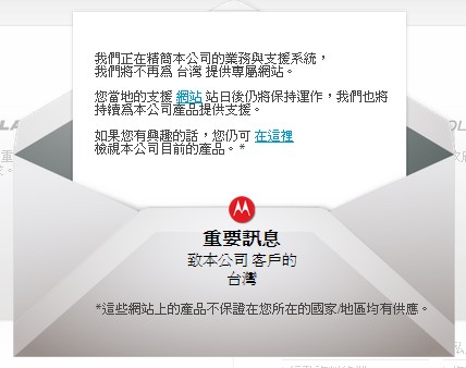 Google本周亦宣布將結束摩托羅拉手機產品在韓國市場的研發中心與銷售業務,於韓國將只銷售電信設備並提供技術支援,並關閉位於印度的小型工廠,此外,現在連至摩托羅拉的台灣網站,也出現不再為台灣提供專屬網站的說明。