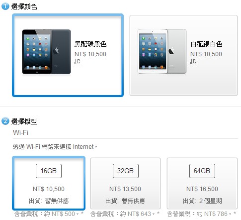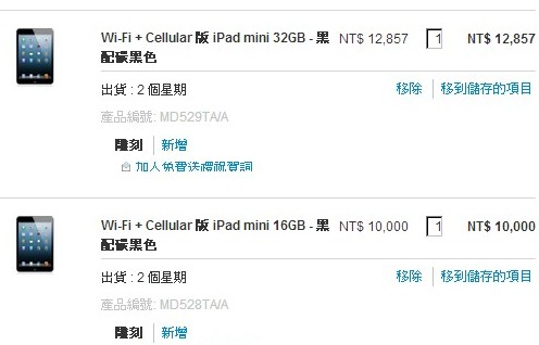 ↑ 新上市的iPad mini黑色16GB和32GB款結帳時會自動免費升級成3G版。