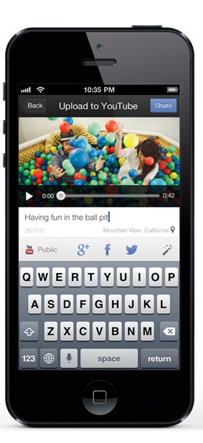 影片完成後除了預設的YouTube之外,還可以透過Twitter、Facebook、Google+等社交網路分享,其中YouTube及Google+可以將影片設定為私人觀賞。