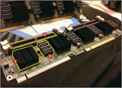 2. 記憶卡插槽:單張Calxeda主機板配備4個記憶卡插槽,每個插槽最高支援4GB的DDR3記憶體。