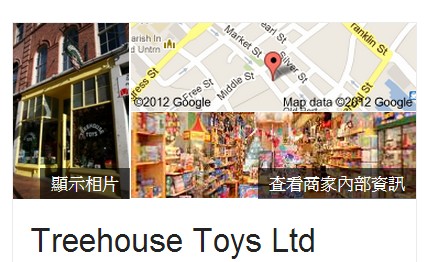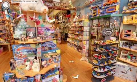 現在Google則把室內街景服務整合到搜尋結果,讓使用者更容易找到這些可以線上瀏覽其實體店面的商家,例如當使用者查詢樹屋玩具城(Treehouse Toys)時,只要在該搜尋結果上點選「查看商家內部資訊」(See Inside)就能像逛街景一樣進入商家內部,瀏覽其店內的陳設與商品,同時也可縮放或平移,彷彿身歷其境一般。