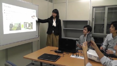 將兩個技術結合之後就完成這項直覺式的影像通訊技術,實際應用於會議時,每位參與會議的人只要舉起手中的智慧型手機或平板電腦拍攝投影螢幕上顯示的簡報內容,就能下載這份會議簡報檔案;想要將手機的照片存到PC時,也是用一樣的方式選好照片,然後開啟相機功能對準PC螢幕,就能把照片存進電腦。