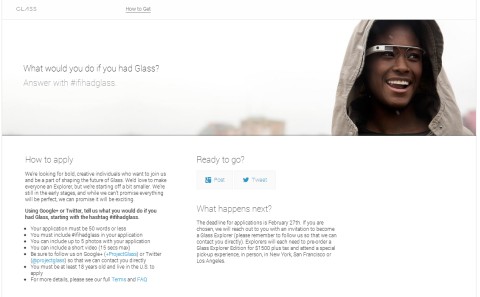 Google會召集一個評審團來遴選這些不同的創意,結果預計於3月中下旬出爐,獲選的民眾即有資格購買Google Glass,但必須親自到紐約、舊金山或洛杉磯領取。