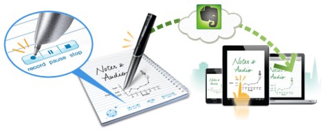 透過Wi-Fi可於書寫同時就將資料上傳至Evernote網路空間,開通Evernote帳號後就能在各種裝置的網頁瀏覽器中閱覽帳號中的文件,與專用筆記本的操作方式一樣,觸控或點選筆記中特定內容就能播放當時所錄下的聲音,並可透過光學字元識別(OCR)與書籤等功能來整理、搜尋文件。