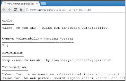 Yahoo奇摩的關鍵字廣告搜便利網站,在今年2月24日被埃及資安專家發現有SQL Injection漏洞,並立即回報給Yahoo,根據該名專家在網站上的更新,Yahoo也已在4月1日時,發布更新檔緊急修補此漏洞。不過,Yahoo奇摩表示,接獲通知後即完成漏洞修補。