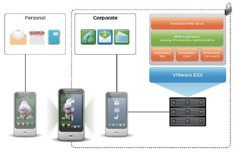 考慮到Android系統安全性較iOS低的情況,2012年底,VMware就推出Horizon Mobile的Beta版,強調在Android系統建立公私分離環境,透過安裝在Android手機上的Hypervisor打造出IT可管理的客製作業系統環境。