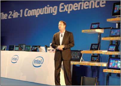 英特爾資深副總裁暨個人電腦用戶端事業群總經理Kirk Skaugen在臺正式發表採22奈米Haswell微架構的第4代Core系列個人電腦處理器,電池整體續航力提升50%,繪圖效能也提升2倍。