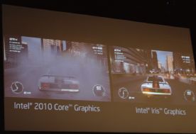 此外,繪圖效能的提升,也是第4代Core系列處理器強調重點之一。英特爾將Intel Iris Pro繪圖晶片內建到第4代Core系列處理器中,所以,Kirk Skaugen表示,繪圖效能可是上一代處理器的2倍,即便要處理3D顯示技術也不必外裝顯示卡。但是,只有特定型號的第4代Core系列處理器才會內建。