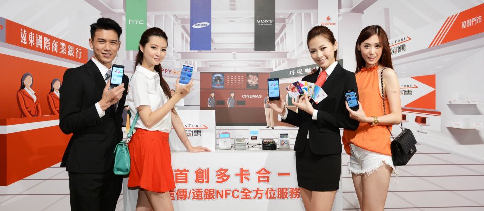 遠傳電信今天(7/8)與遠東商銀、悠遊卡公司、Happy Go、MasterCard、高雄捷運、合作金庫、金雅拓、丹堤咖啡、三星、HTC、Sony等宣佈共同合作,未來將推出整合性的NFC手機應用服務,未來整合多種卡片功能,例如信用卡、悠遊卡、交通電子票證卡,擴大NFC手機應用範圍。