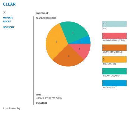 Clear每種版本皆支援12種弱點檢測,像是SQL注入、跨站腳本(XSS)等,而這12種弱點分類並包含了OWASP TOP 10。OWASP TOP 10是由負責研議網路軟體安全標準、工具與文件的開放網路軟體安全計畫(Open Web Application Security Project,OWASP),每隔幾年所發布10大網路應用系統安全漏洞開放網路軟體安全計畫。