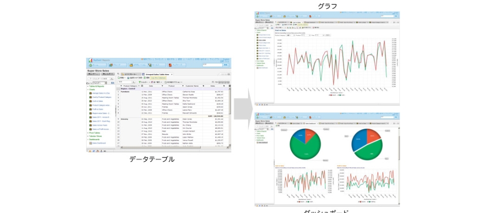 FUJI XEROX在日本推出SkyDesk Reports雲端服務,企業可將收集到的CRM顧客管理資訊、業務活動資訊等,按照使用需求整理為圓餅/長條圖、樞紐分析表(pivot table)、各式績效儀表板(dashboard)等視覺化圖像資料。