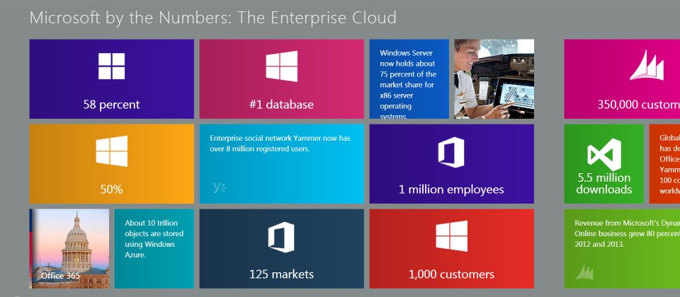 這波的企業雲端更新包含即將於10月18日釋出Windows Server 2012 R2與System Center 2012 R2,宣稱結合這兩項產品將允許企業利用Hyper-V打造無國界的資料中心,提供低價與高效能的儲存服務,並可作為新Windows Azure Pack的基礎,讓企業與服務供應商得以提供自助式的架構與平台。