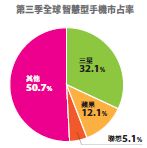 根據Gartner在2013年第三季的全球手機市場報告,聯想依靠著中國市場的快速成長,以5.1%的市占率擊敗LG,成為第三大智慧型手機商,次於三星的3 2.1%,以及蘋果的12.1%。而LG和華為則分列第四、第五名,聯想的智慧型手機以中國市場為主,而非海外市場。