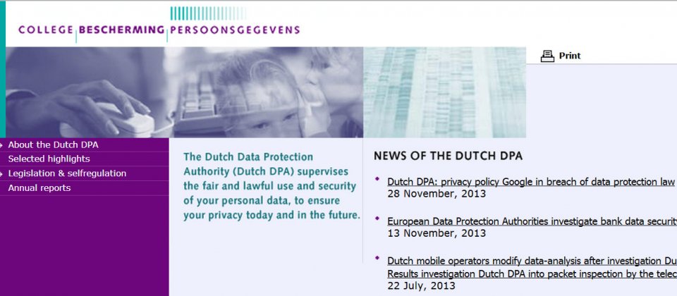 對於Google在2012年開始在全球採用的新隱私權政策,荷蘭資料保護局(Dutch Data Protection Authority, Dutch DPA)公布調查結果指出,Google整合不同服務資料的做法違反了荷蘭的資料保護法。