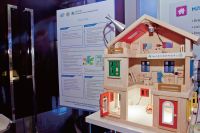 另一項M2M應用則是智慧節能呵護屋系統。臺大研究團隊在房屋內設置了多種無線感測器來蒐集屋內環境資訊和用電情況,來推出居住者的活動特徵,例如研究團隊在電器用品插座處,設置市售無線電力表來蒐集各種家電的用電變化,例如看電視時客廳哪些設備或電燈的用電增加。呵護屋系統透過無線網路取得這些用電資訊後,再搭配溫濕度等無線環境感測器搜集到的屋內資訊,能自動歸納分析出居住者在屋內的活動模式,以及對應的用電模式,再參考國際節能標準,提供屋內家電用電建議給使用者。