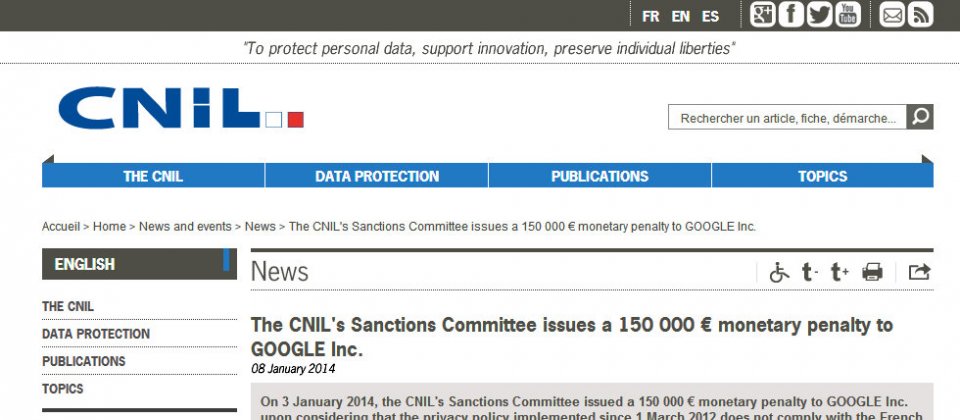 2012年2月Google更新隱私條款消息公佈後引發多國不滿。當時CNIL所屬的歐盟第29條資料保護工作小組 (G29) 即展開調查,認為此舉違反歐盟法規並要求Google暫緩執行。不過Google仍然於3月推行新的隱私條款。同年10月,歐洲各國的資料保護機構對Google的隱私政策提出多項建議,不過Google依然故我。2013年歐盟國家各自展開調查,並接連決定對Google開罰。2013年荷蘭與西班牙分別對Google 做出40萬及123萬美元罰款的處份。其他正在調查的國家還包括英國、德國與義大利等。
