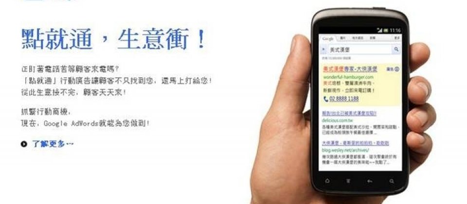 Google在行動網路廣告上提供「點就通」(Click to Call),讓消費者看到商家廣告可以直接撥通電話給賣家,Google取得的新廣告專利,讓廣告主可以提供消費者免費接送服務,進一步縮短廣告主與消費者間的距離。