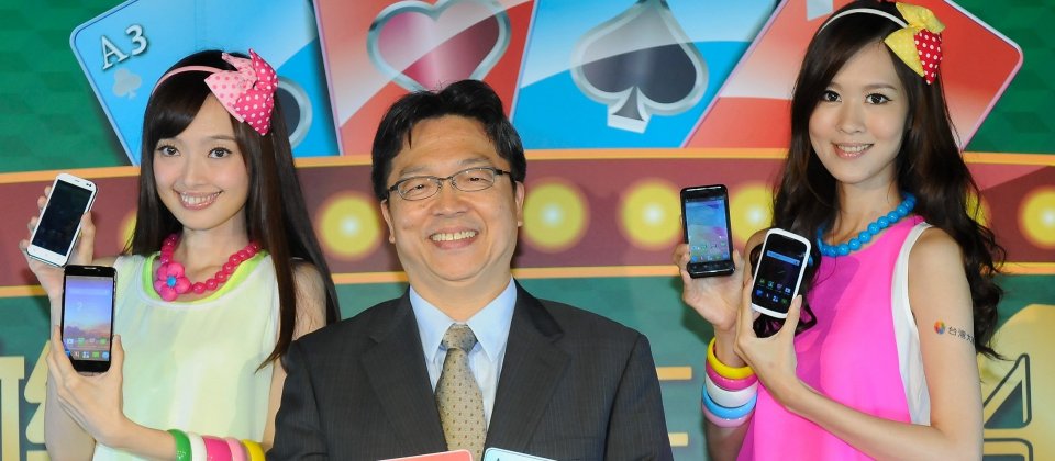 賴弦五(中)離開台灣大哥大後,改投入台灣之星接掌該公司總經理一職,未來將帶領台灣之星及威寶挑戰國內電信市場。圖為賴弦五在台灣大哥大時的資料照片。