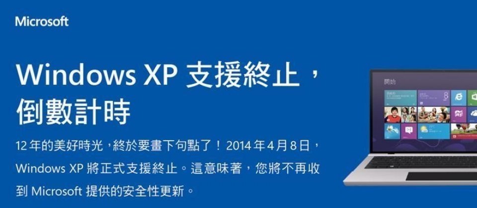 微軟預計在4月8日同時終止對Windows XP與Office 2003產品的支援,使用這些產品的用戶將無法再收到產品的安全更新,也無法再取得來自微軟的技術支援。
