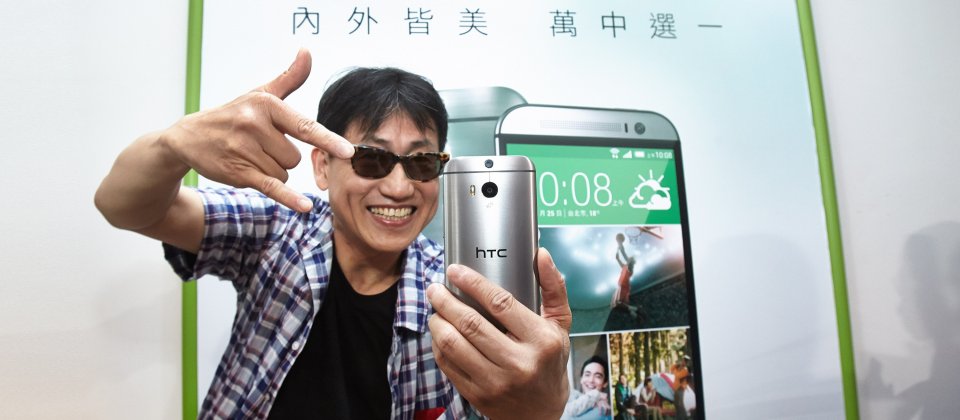 HTC One(M8)今起開賣,第一位在台北首賣會現場購買手機的民眾相當興奮。