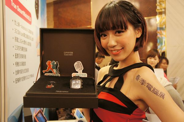 其中一款國內業者引進的Omate智慧手錶,為透過KickStarter募資100萬美元開發的Android智慧手錶,該手錶具備Android手機的基本功能,因此可獨立於手機使用,瀏覽網際網路、收發電子郵件等等。手錶內建1.3GHz雙核心處理器、512MB記憶體及4GB儲存容量,錶身旁邊內建500萬畫素的主相機,可支援手機通話、3G上網,國內售價為9399元。