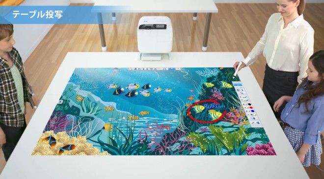 ↓ 投影在大型桌面上的使用情境。(圖片來源EPSON)