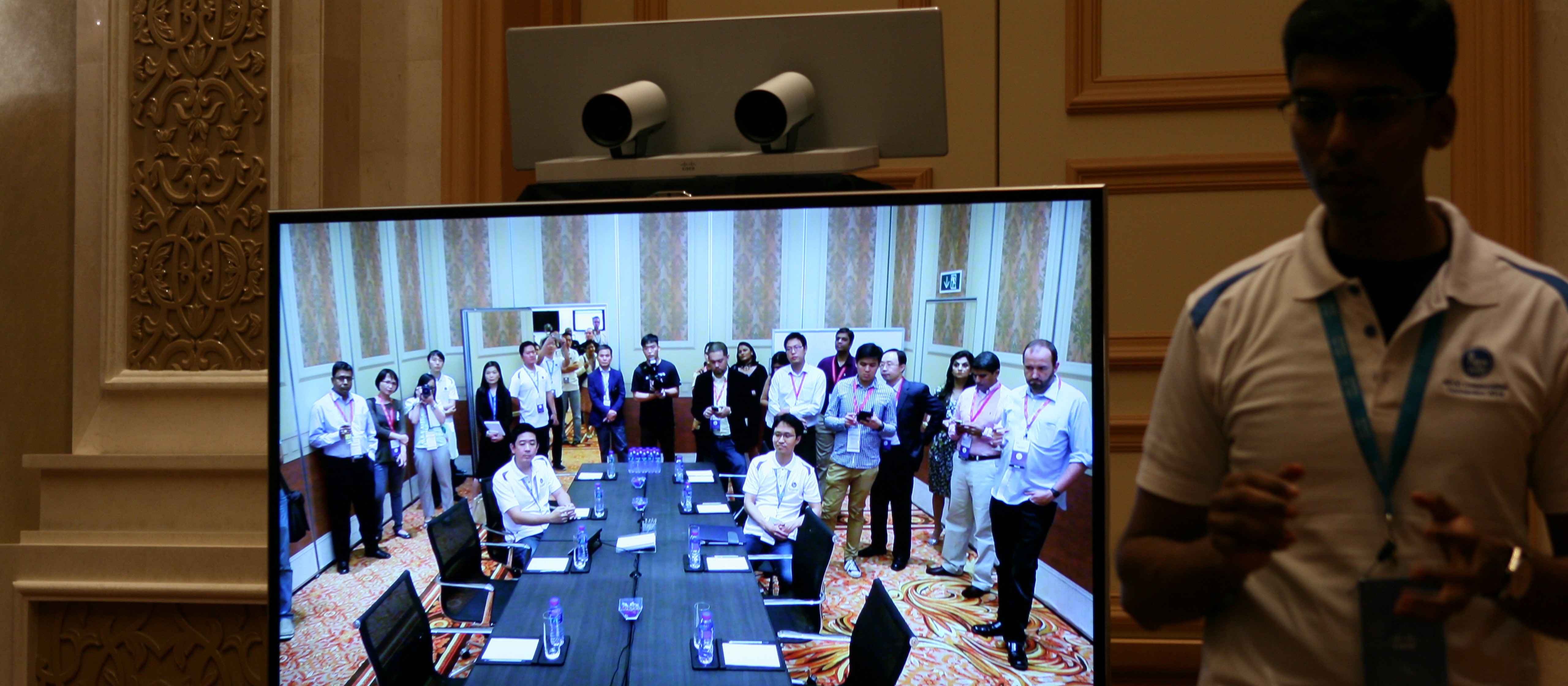 除了推出先產品,思科也展示了今年初發表的大型會議室專用網真設備MX700和MX800, MX700具備55吋的雙螢幕,而MX800則是70吋的單螢幕,可讓用戶和對象在視訊會議過程中如同身在同一會議室。