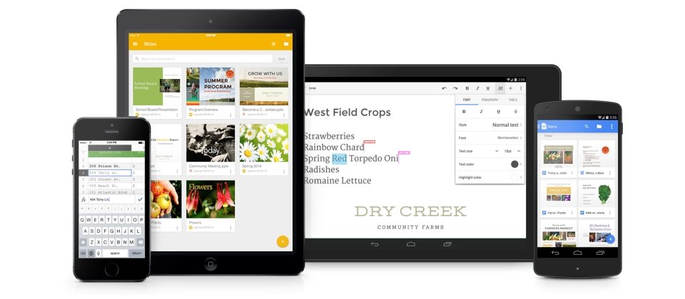 Google Drive供應了3項免費的雲端生產力產品,涵蓋可用來進行文字編輯的Docs、試算表編輯工具Sheets,以及簡報編輯工具Slides,並先行釋出Docs及Sheets的獨立行動程式。本周三再度發行支援Android平台的Slides程式,iOS版本預計於數周後出爐。