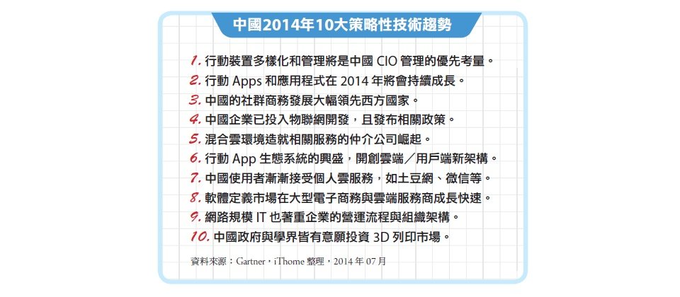 中國2014年10大策略性技術趨勢