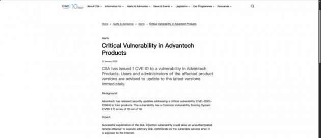 新加坡網路安全局(Cyber Security Agency of Singapore,CSA)近日針對研華科技(Advantech)用戶提出警告,該廠牌的工業物聯網系統IoTSuite 3D Visualization(SaaS Composer)存在重大層級漏洞CVE-2025-52694,呼籲用戶要儘速套用修補程式因應