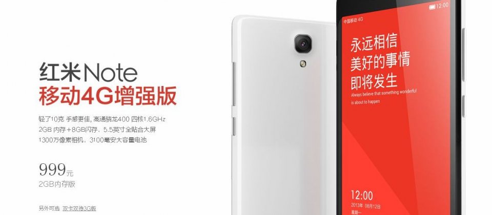 小米旗下紅米Note手機改版,從聯發科八核心處理器改為高通四核心處理器,並支援4G行動上網,中國地區搶先上市,售價999元人民幣(台幣約4925元),台灣的上市時間則還未定。